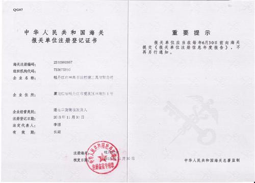 海關(guān)報(bào)關(guān)單位注冊登記證書